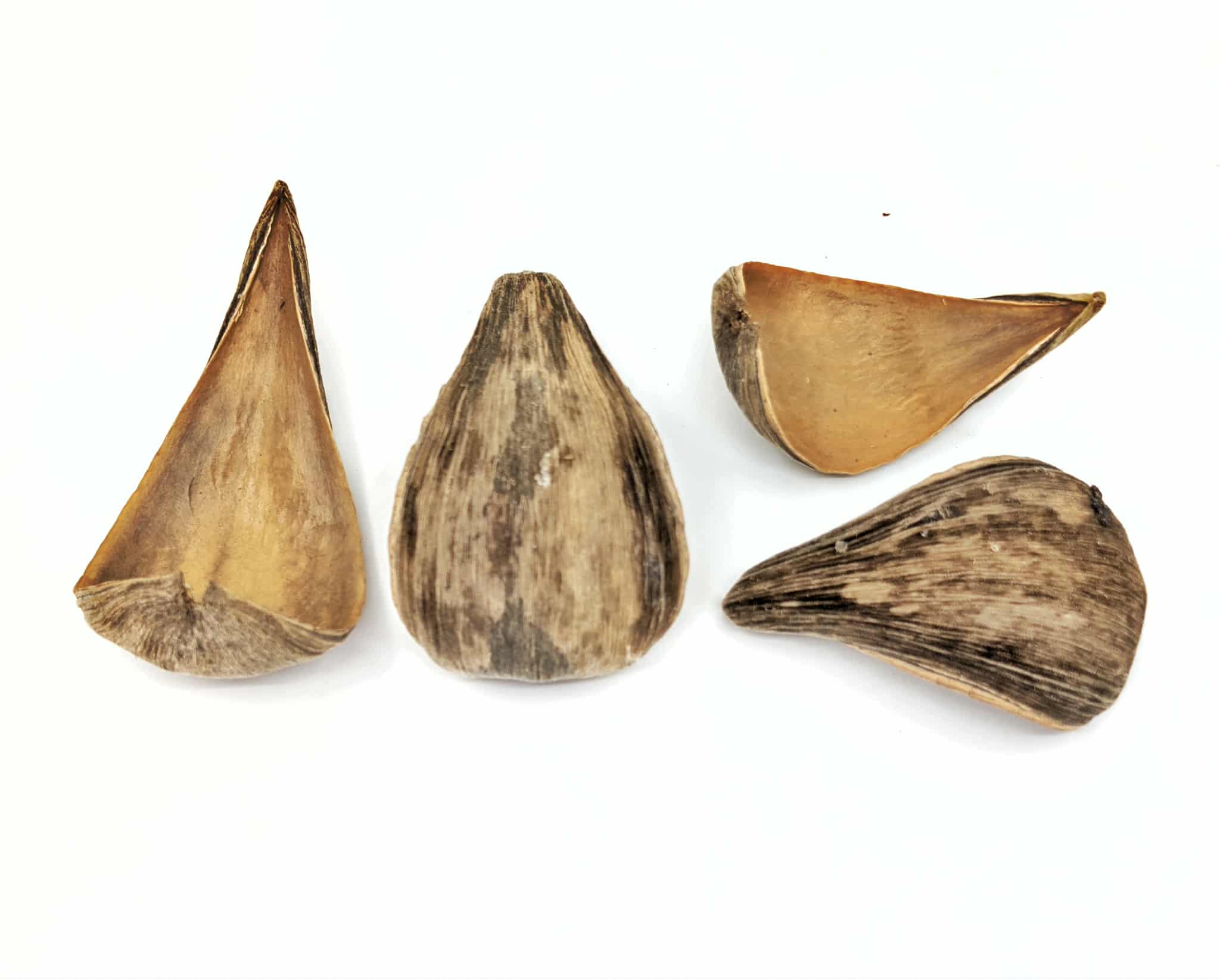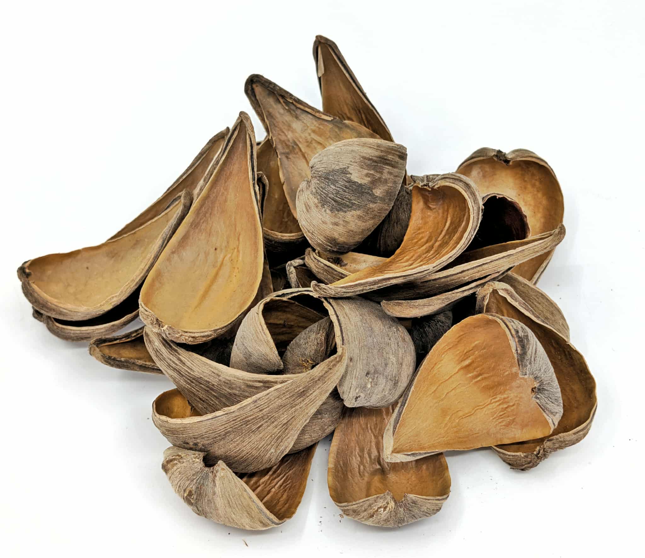 As shown in the images, Dregea Pods vary naturally in size, shape, and surface texture, with smooth interiors and lightly striated exteriors. Each pod is unique, ensuring an organic, non-uniform look in every setup.