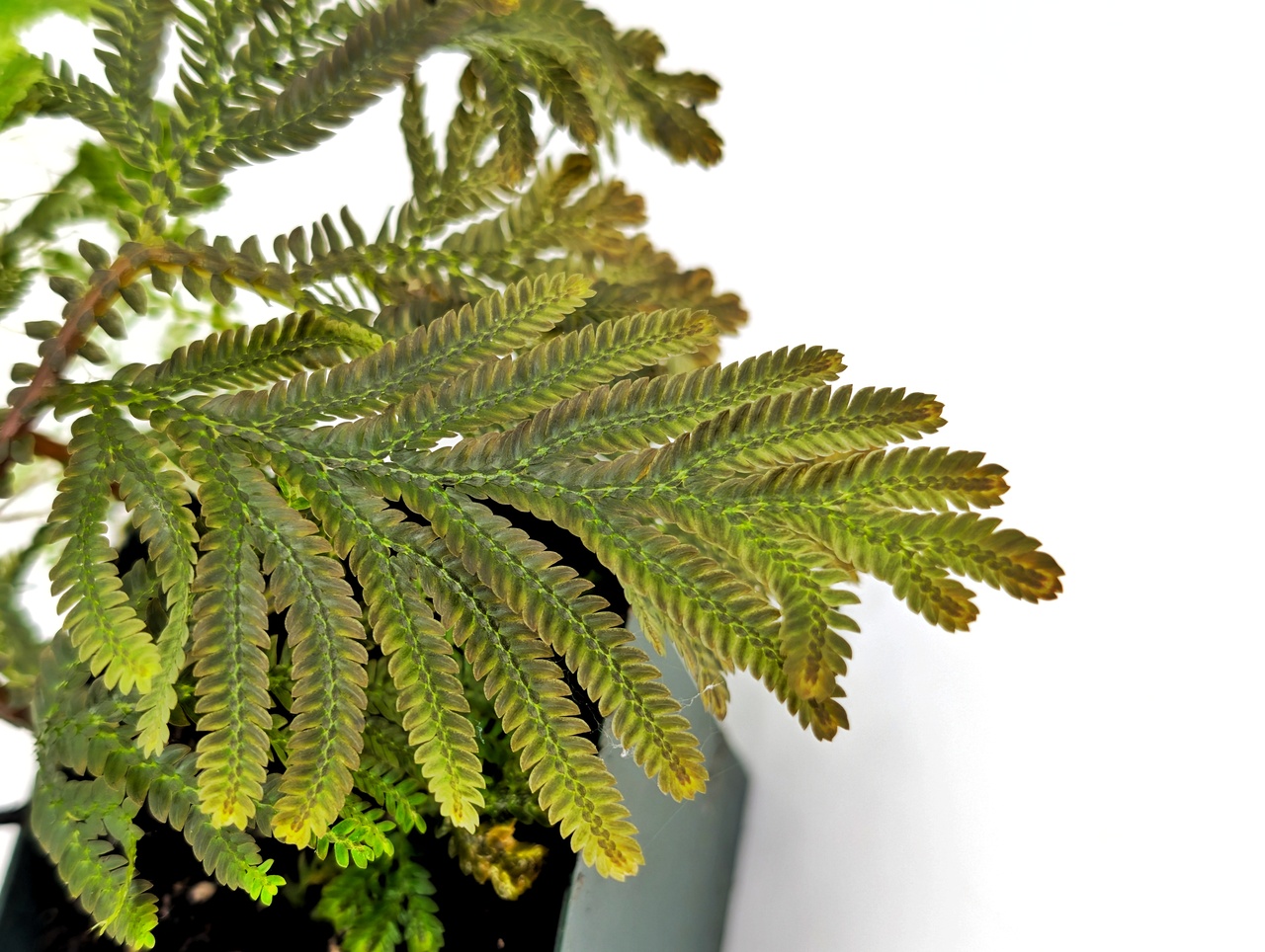 Selaginella siamensis is a rare and beautifully textured spikemoss native to Southeast Asia. Its delicate, branching fronds form a dense mat of lush green foliage, often highlighted with subtle blue or bronze tones depending on light and humidity. This fine, lace-like growth makes it a striking choice for terrariums, where it adds both depth and softness to a planting.